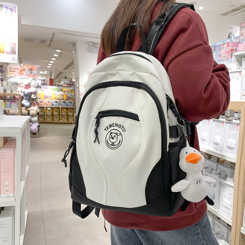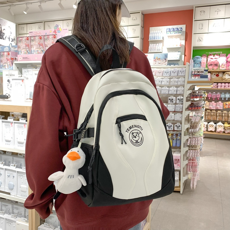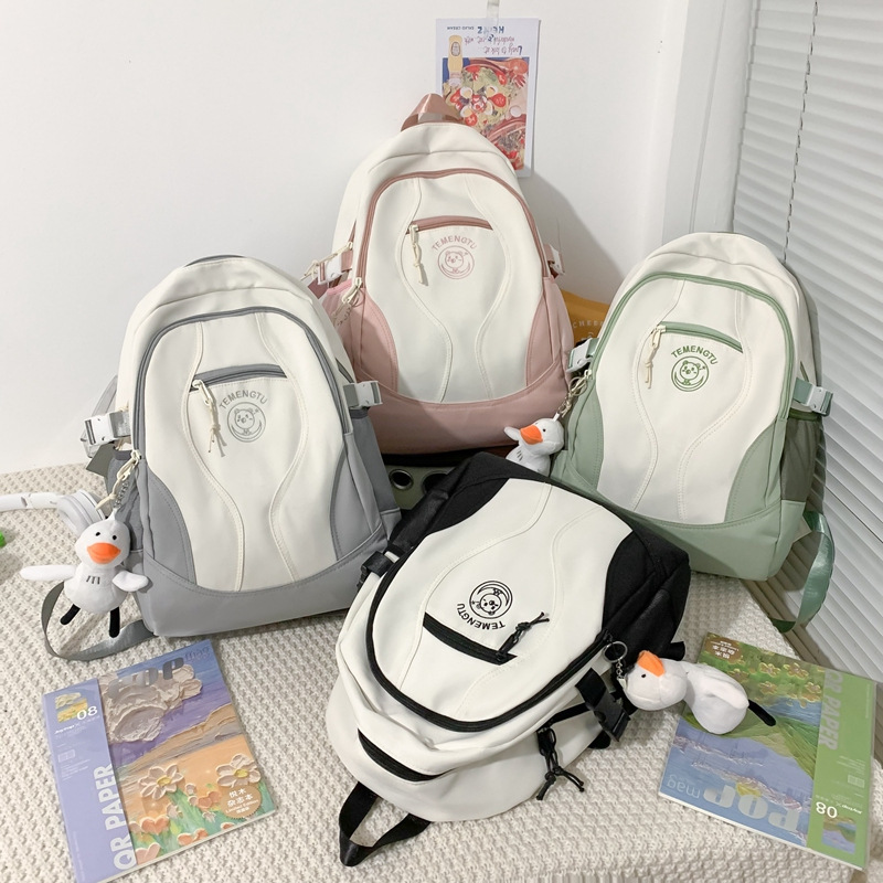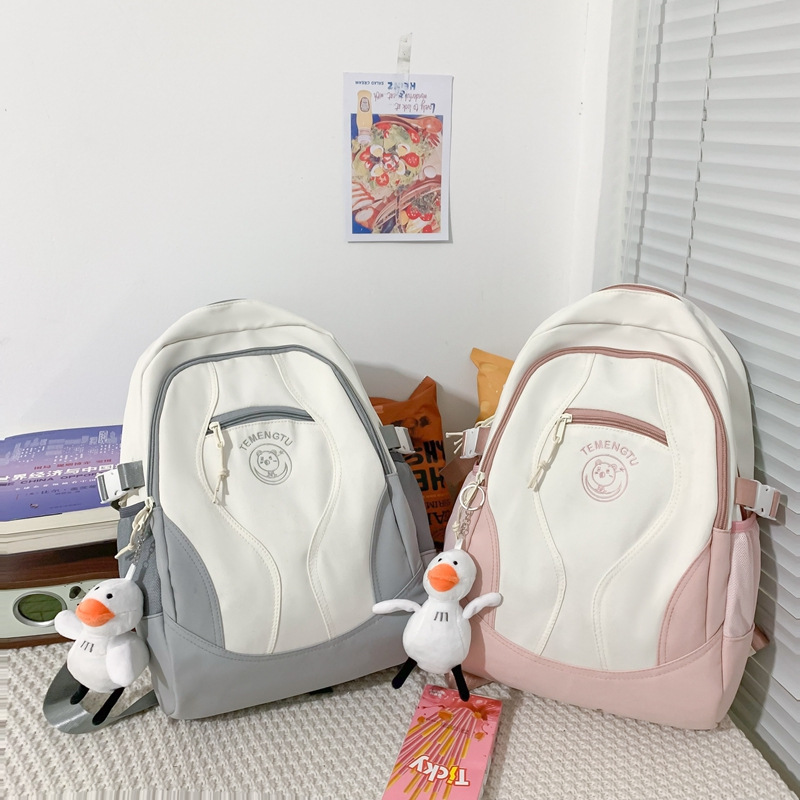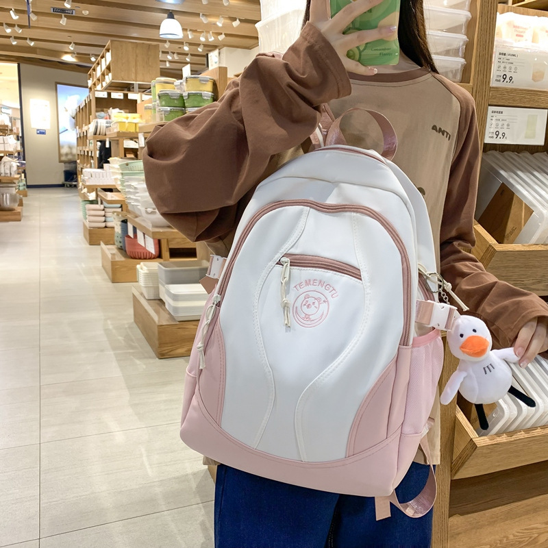 书包女日系ins高颜值森系百搭撞色双肩包初中学生高中生防水背包