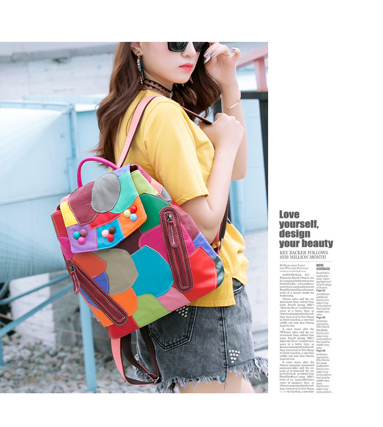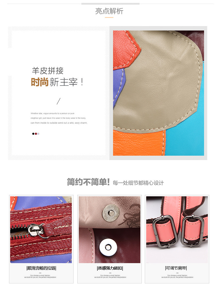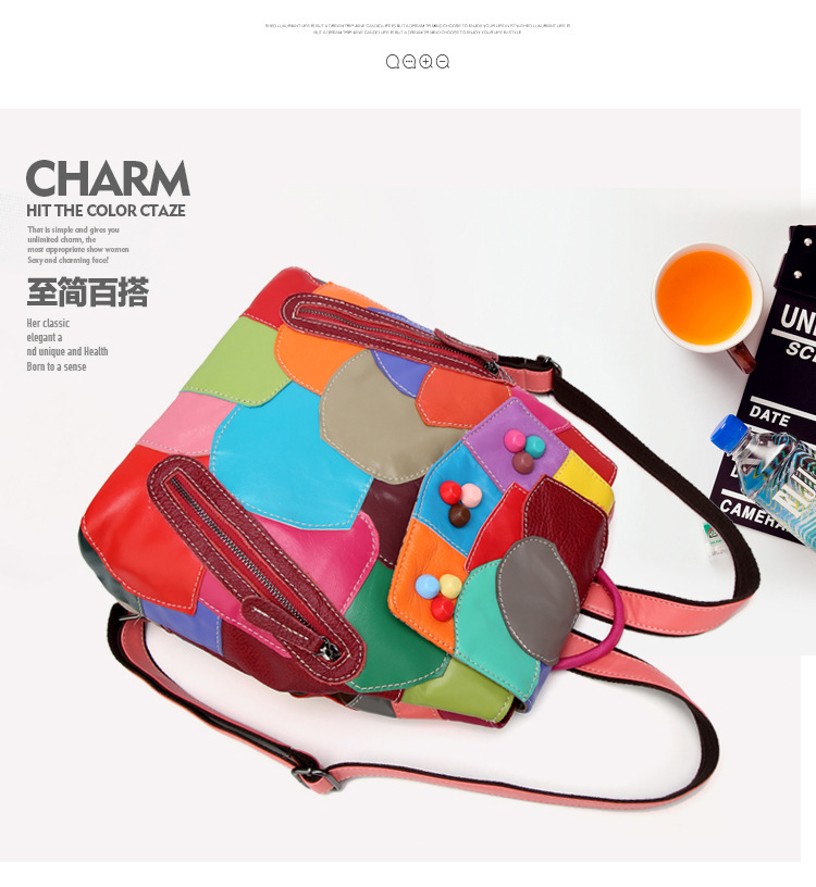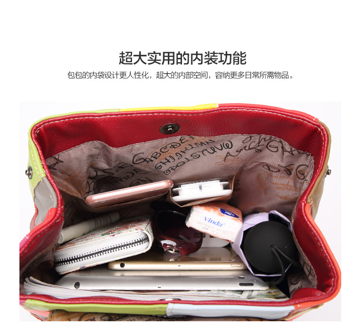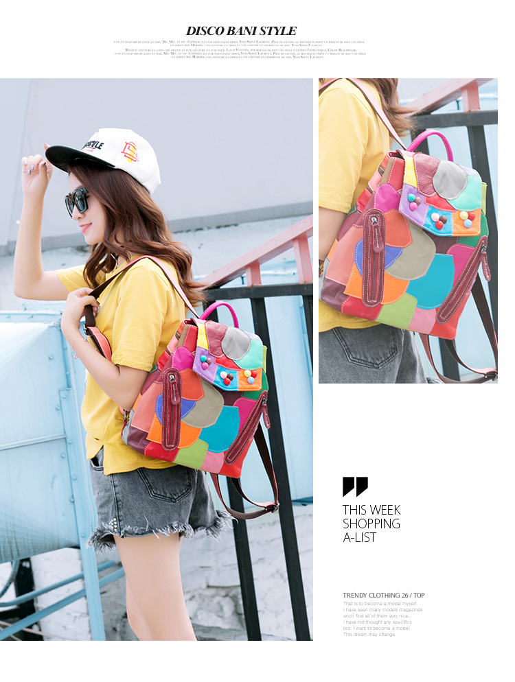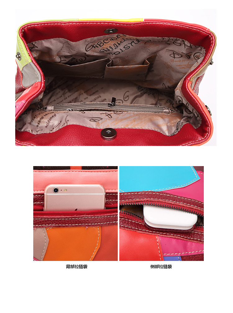 时尚休闲彩色真皮单肩手提双肩背包经典百搭拼接撞色女士背包