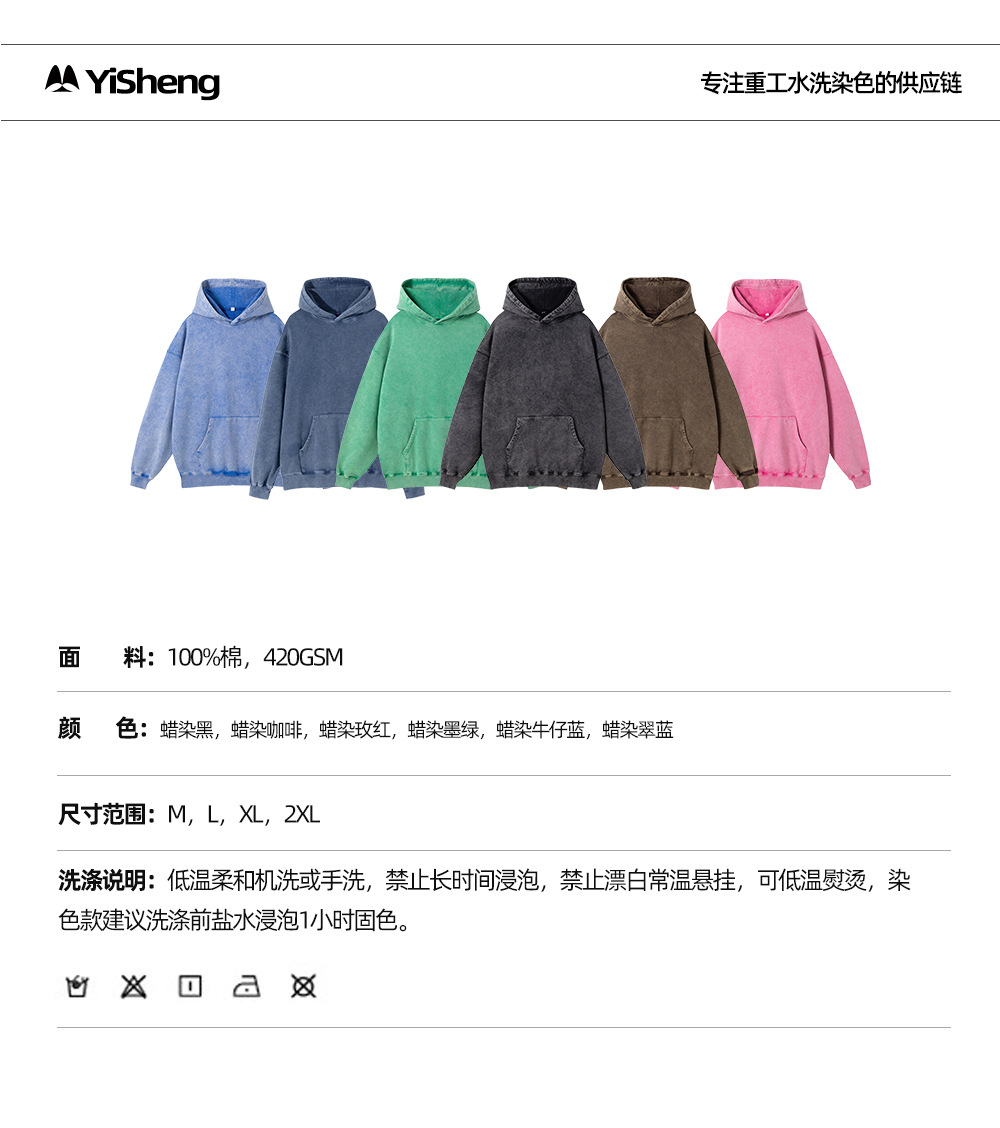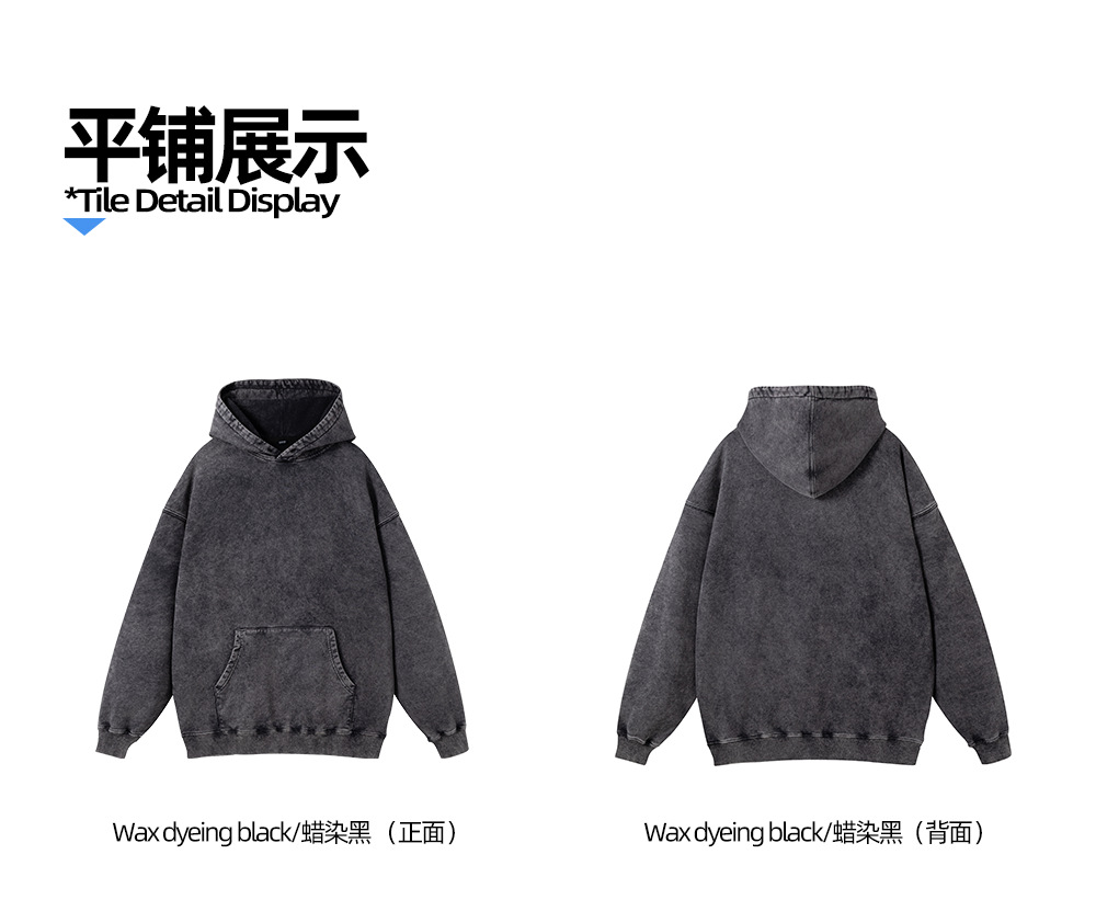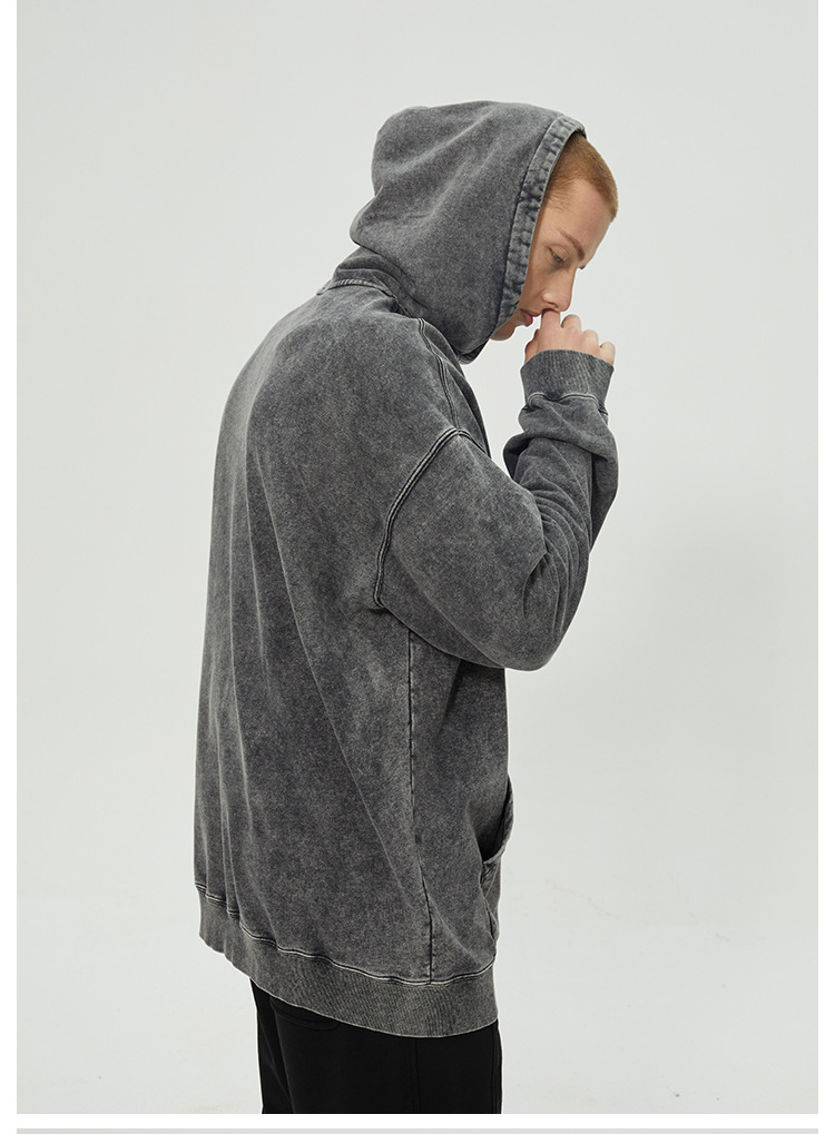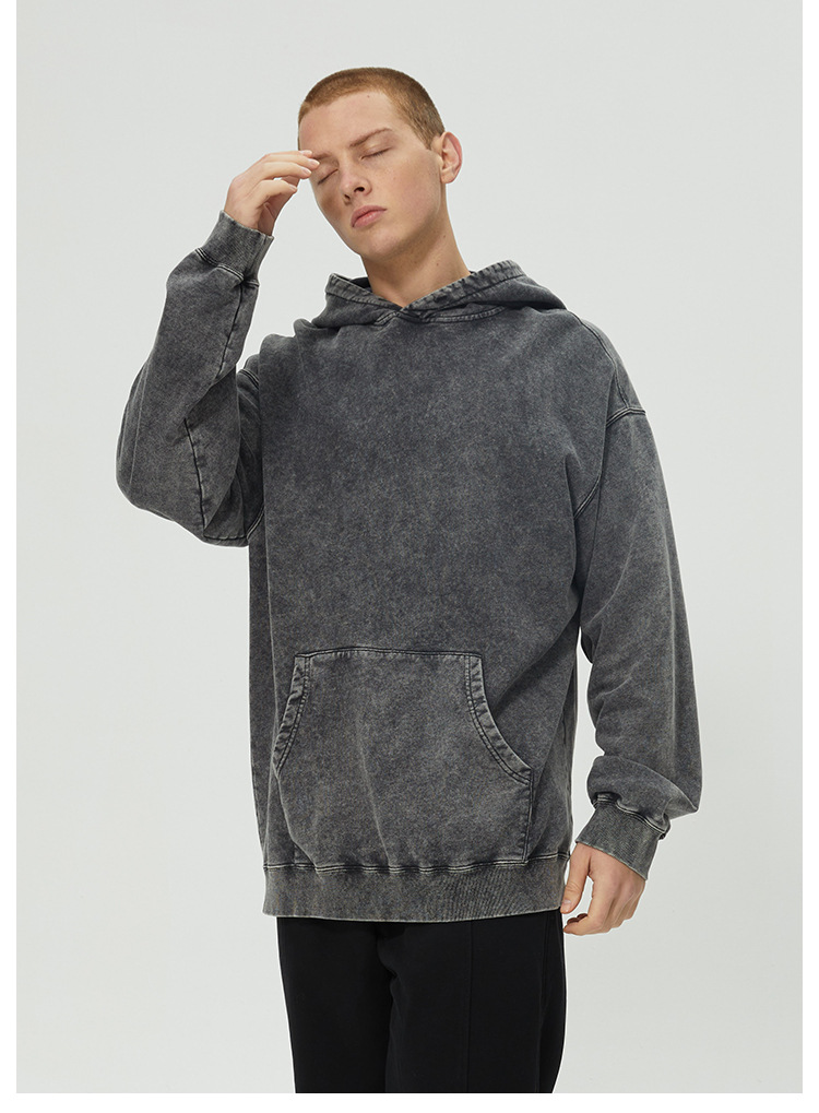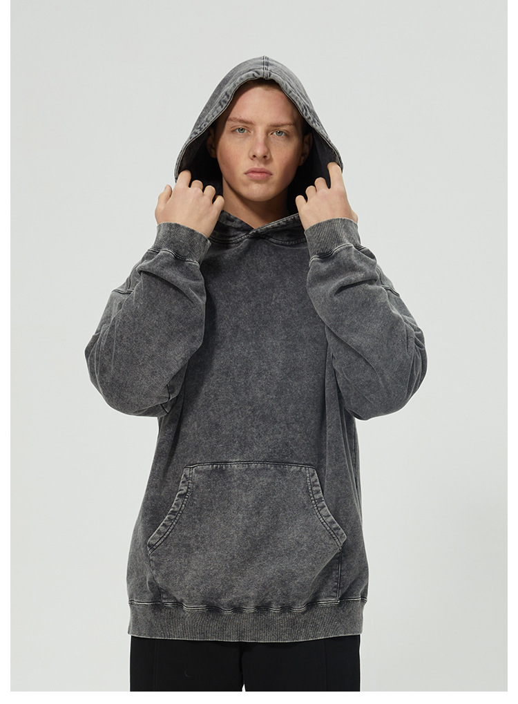 跨境外贸重磅纯棉水洗做旧卫衣潮牌休闲复古石磨炒雪花男装青少年